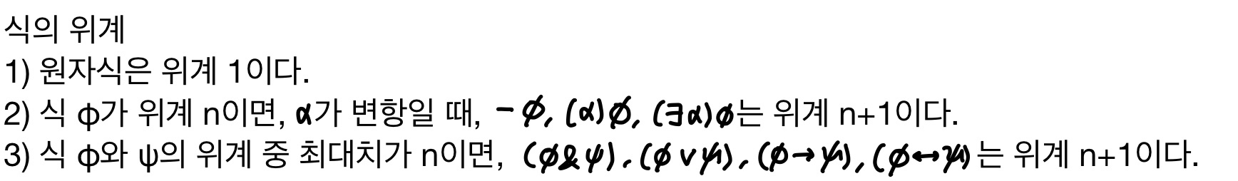 (2) φ와 ψ가 식이면, (φ⋁ψ), (φ&ψ), (φ⟶ψ), (φ⟷ψ)도 식이다.