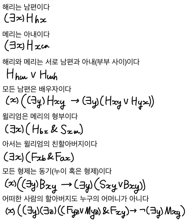 - 주어진 해석을 사용해 다음 문장들을 기호화하시오.