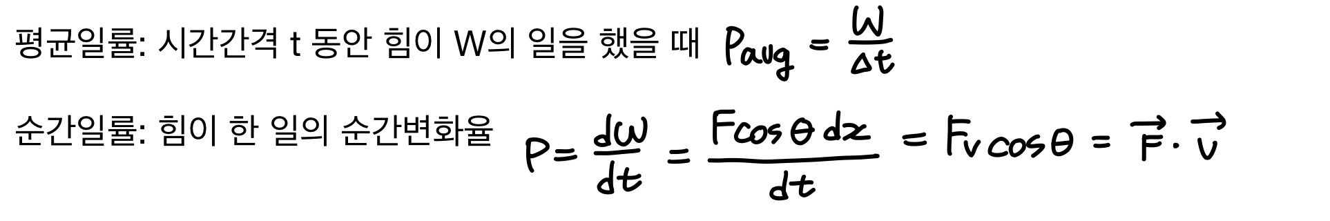 일률: 힘이 한 일의 시간변화율 (단위: W)
