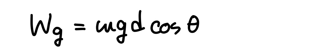 W=Fdcosθ 에서 F 대신 중력의 크기 mg를 사용하면 중력이 한 일 Wg는 다음과 같다.
