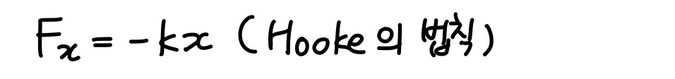 x축을 용수철의 길이방향과 평행하게 잡고, 평행위치를 원점으로 잡으면 다음과 같이 식을 바꿔 쓸 수 있다.