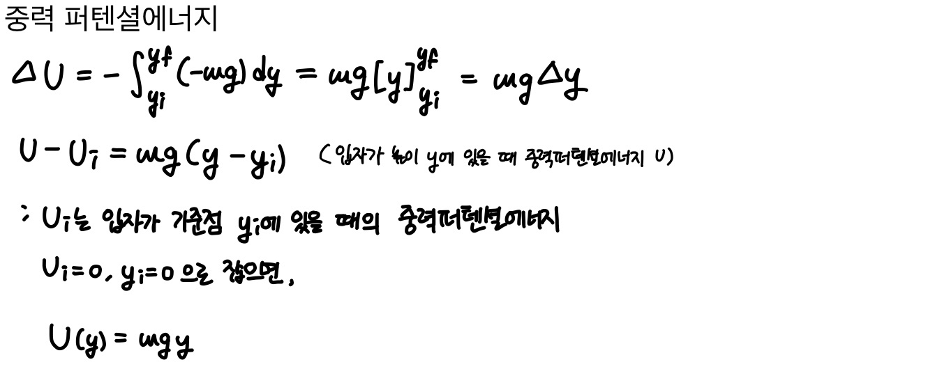 퍼텐셜에너지의 변화는 기준점 y=0의 선택과 무관하고, 높이의 변화 Δy에만 의존한다.