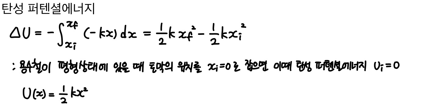 ΔK=W, ΔU=-W 이므로 ΔK=-ΔU이다. 즉, 두 에너지 중 하나가 증가하면 다른 에너지는 같은 양만큼 감소한다.