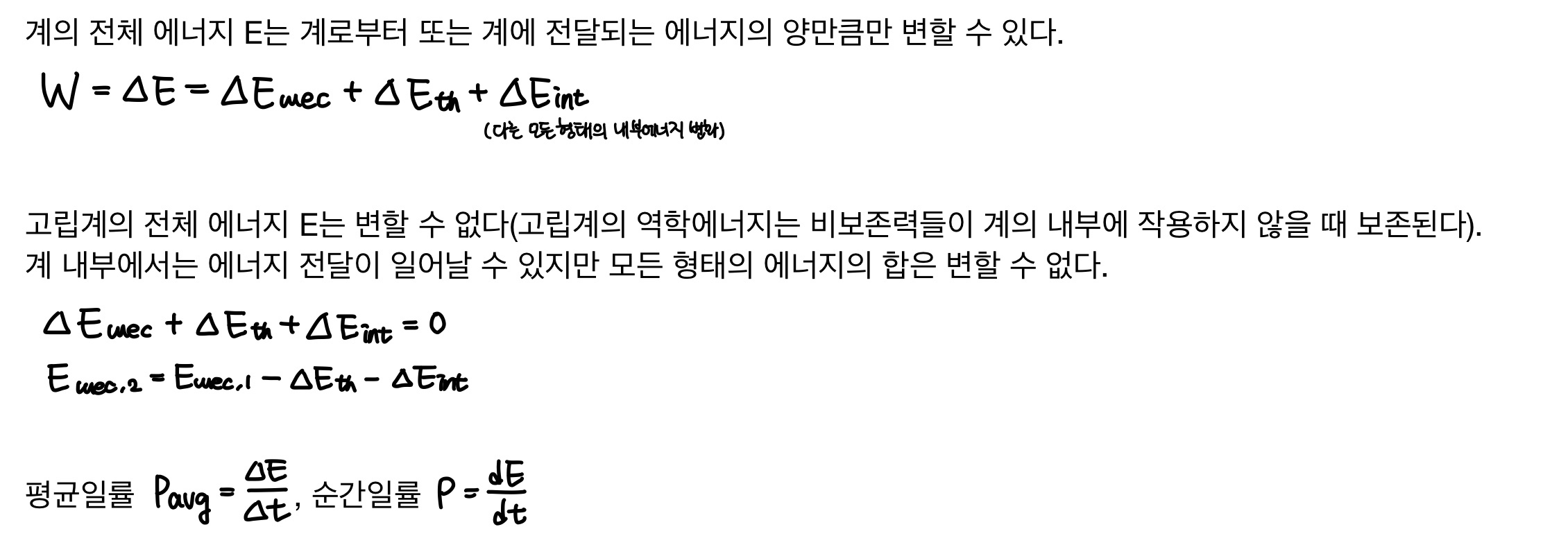 - 계의 짜임새가 변할 때 힘은 물체에 일(W1)을 하며, 그 결과 물체의 운동에너지 K와 계의 다른 형태의 에너지 사이에 에너지 전환이 일어난다.