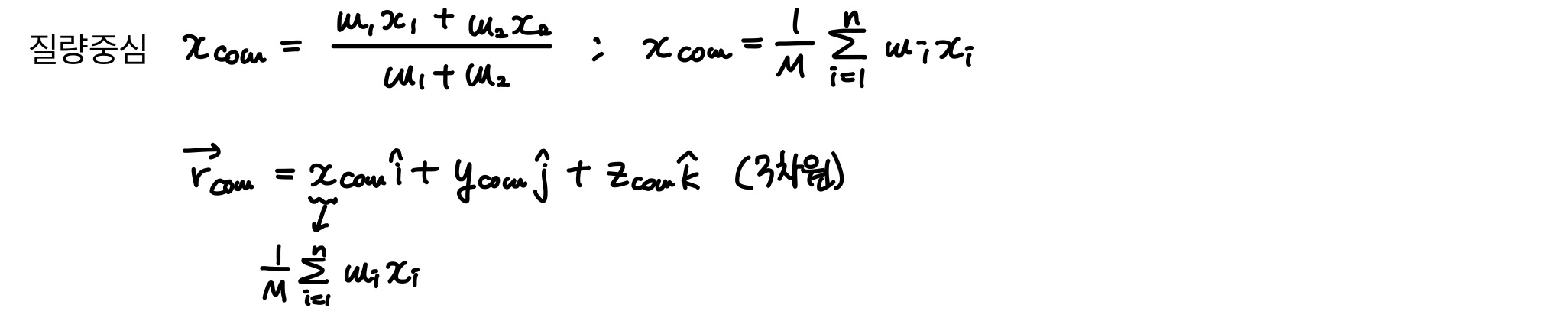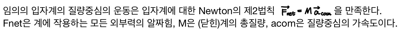입자계의 선운동량은 계의 총질량 M과 질량중심의 속도를 곱한 것과 같다.