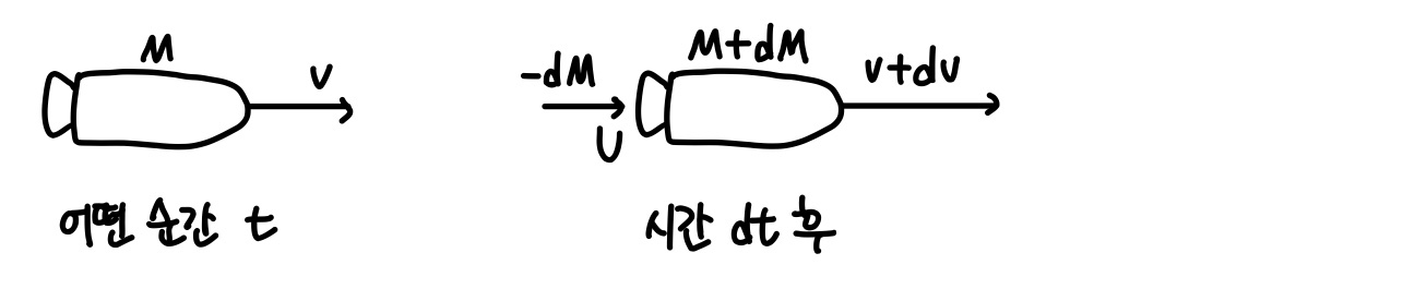 즉, Mv = (-dm)(U) + (M+dM)(v+dv) 이다.