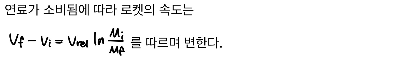 (기준틀에서 본 로켓의 속도) = (배기물에 대한 로켓의 상대속도) + (기준틀에서 본 배기물의 속도) 이므로