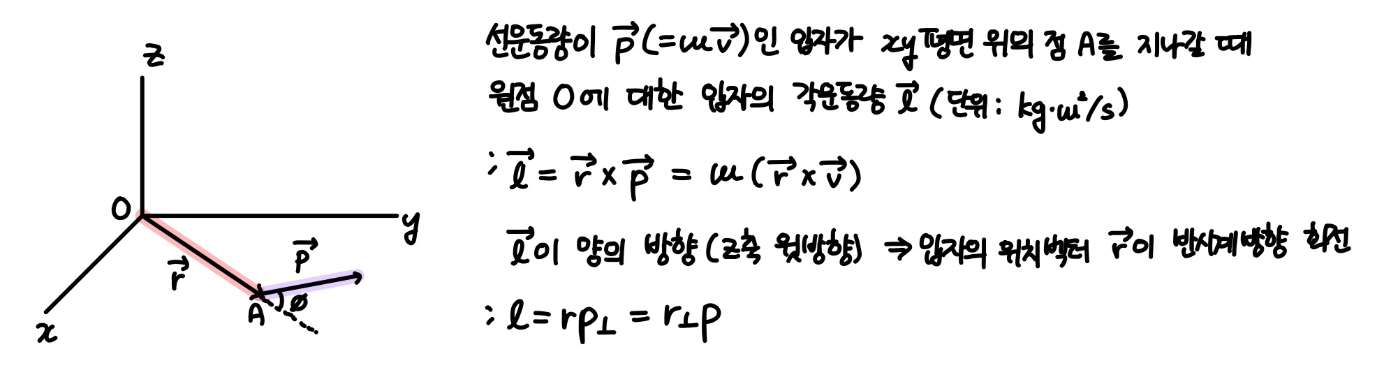 2. 각운동량 벡터의 방향은 항상 벡터 r와 벡터 p가 만드는 평면에 수직이다.