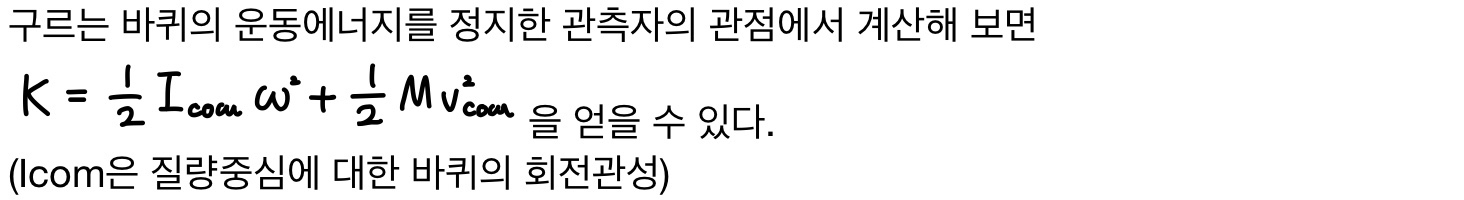물체가 구름 운동을 하기 위해서는 마찰이 필요하다(마찰 없이는 미끄러지지 않으며 구르는 것이 불가능하다).