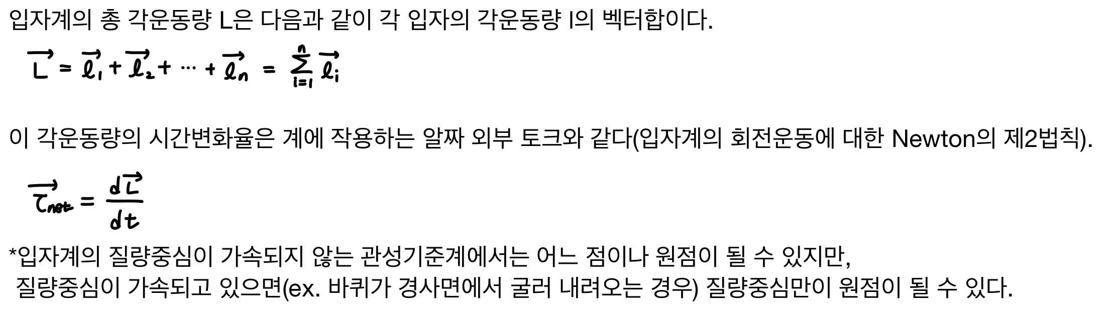 L=Iω (I: 고정축에 대한 강체의 회전관성)